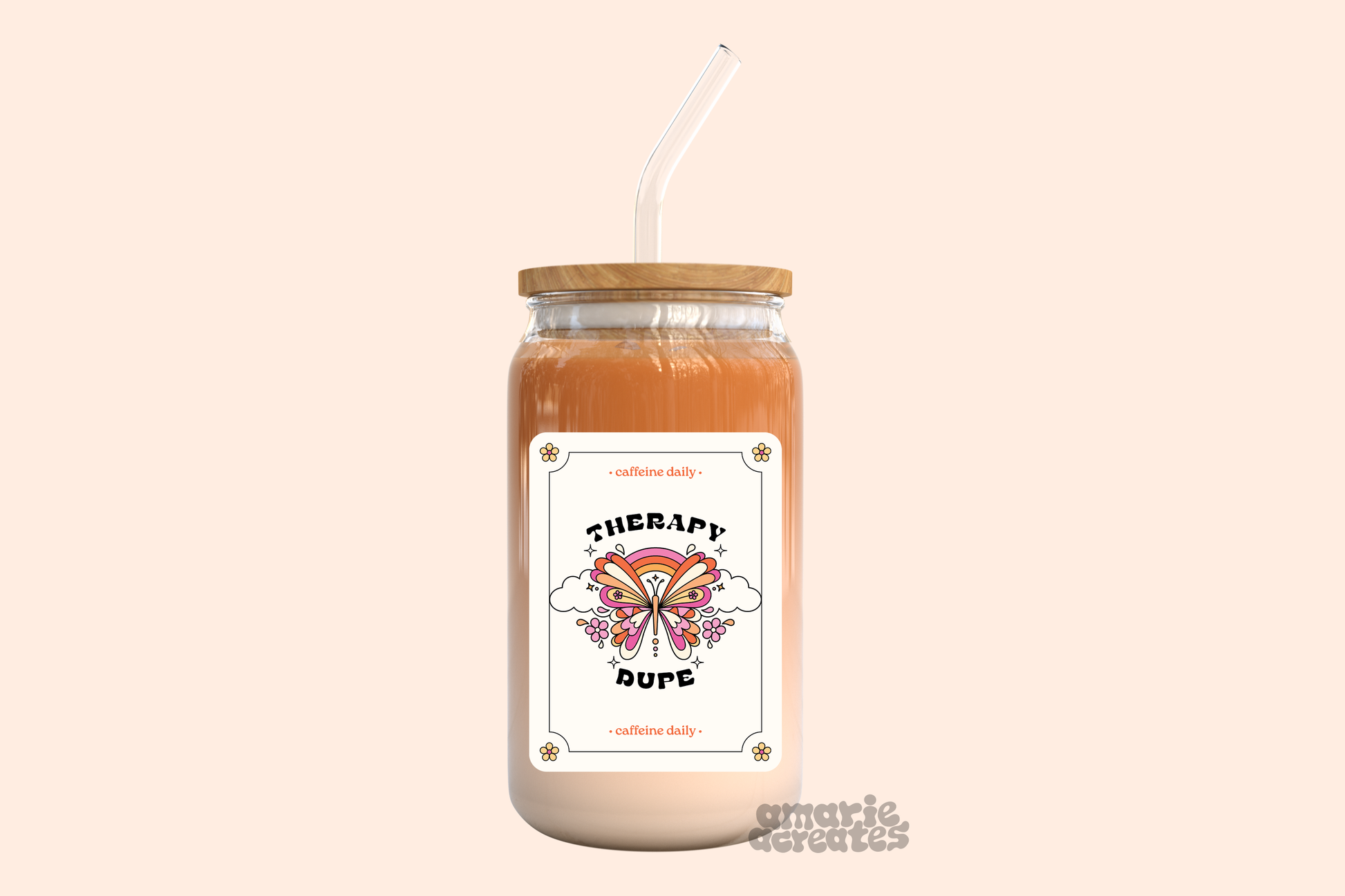 ☀️ Therapy Dupe Glass Cup – 16 oz of Butterfly-Powered Bliss